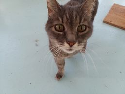Jenny is very senior and looks forward to here morning 1/2 can of food. She will finish her life with us.